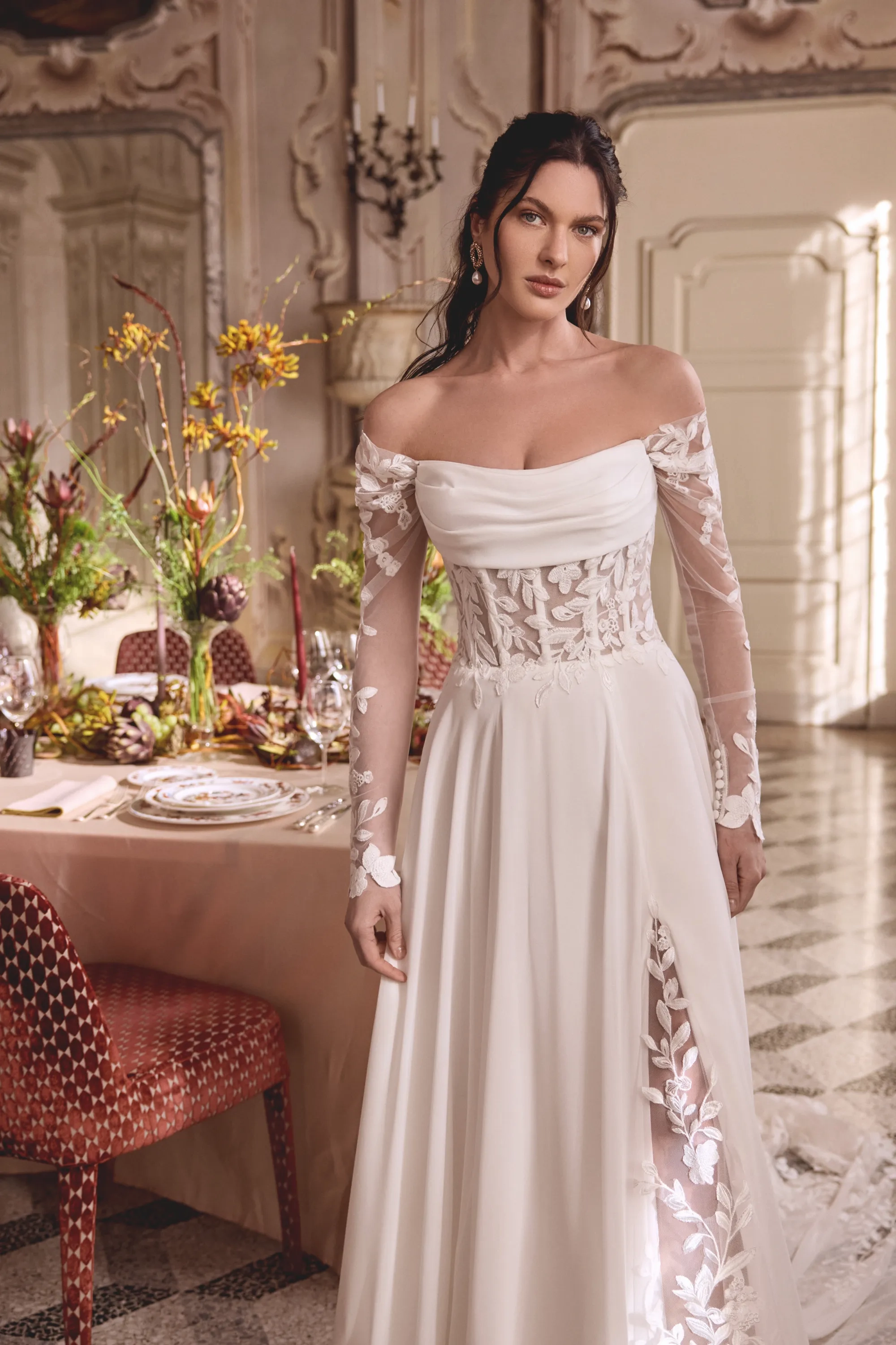 Fabric:Chiffon, Crepe, Lace Appliques, Tulle